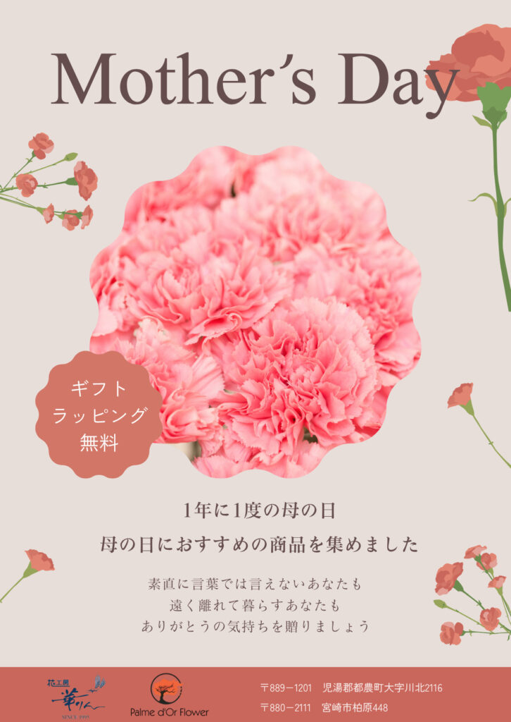 5月10日は母の日です!!日頃の感謝を込めてお花を贈りましょう❣